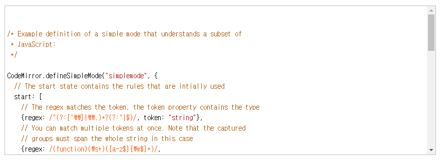 CodeMirror는 웹페이지에서 JavaScript로 구현된 가독성 높은 텍스트 에디터입니다.