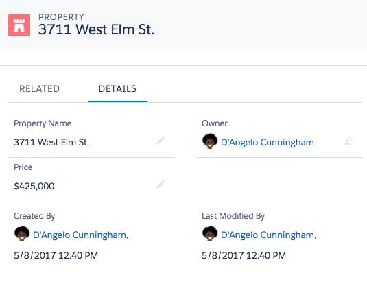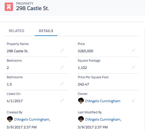그러나 주택 판매와 관련하여 추적하려는 항목이 더 많습니다.예를 들어 Salesforce에는 속성을 추적하는 표준 방법이 포함되어 있지 않습니다.DreamHouse는 어떤 주택이 판매되고 있는지 또는 각 주택의 가격이 얼마인지 어떻게 알 수 있습니까?