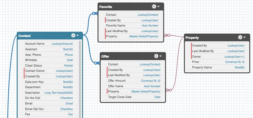 계정 대 연락처 관계는 Salesforce의 표준 관계의 예입니다.그러나 개체 및 필드와 마찬가지로 사용자 지정 관계를 구축할 수도 있습니다.마지막 단원에서는 Property 및 Offer의 두 개체를 만들었습니다.집에 대한 모든 제안이 Salesforce의 기록에 표시된다면 좋지 않을까요?