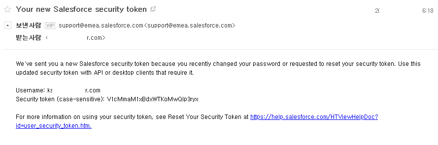 - In the mailbox for the email address associated with the Salesforce account to be used by the Coveo connector, look for the latest email message received from support@salesforce.com with subject: salesforce.com security token confirmation.