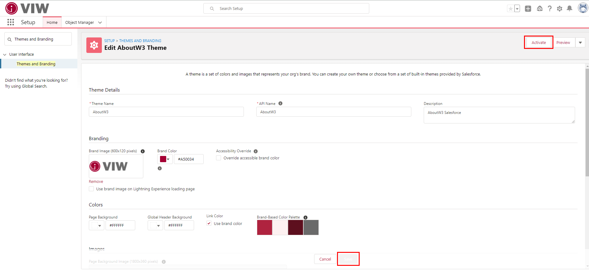 Setup : Themes and Branding
