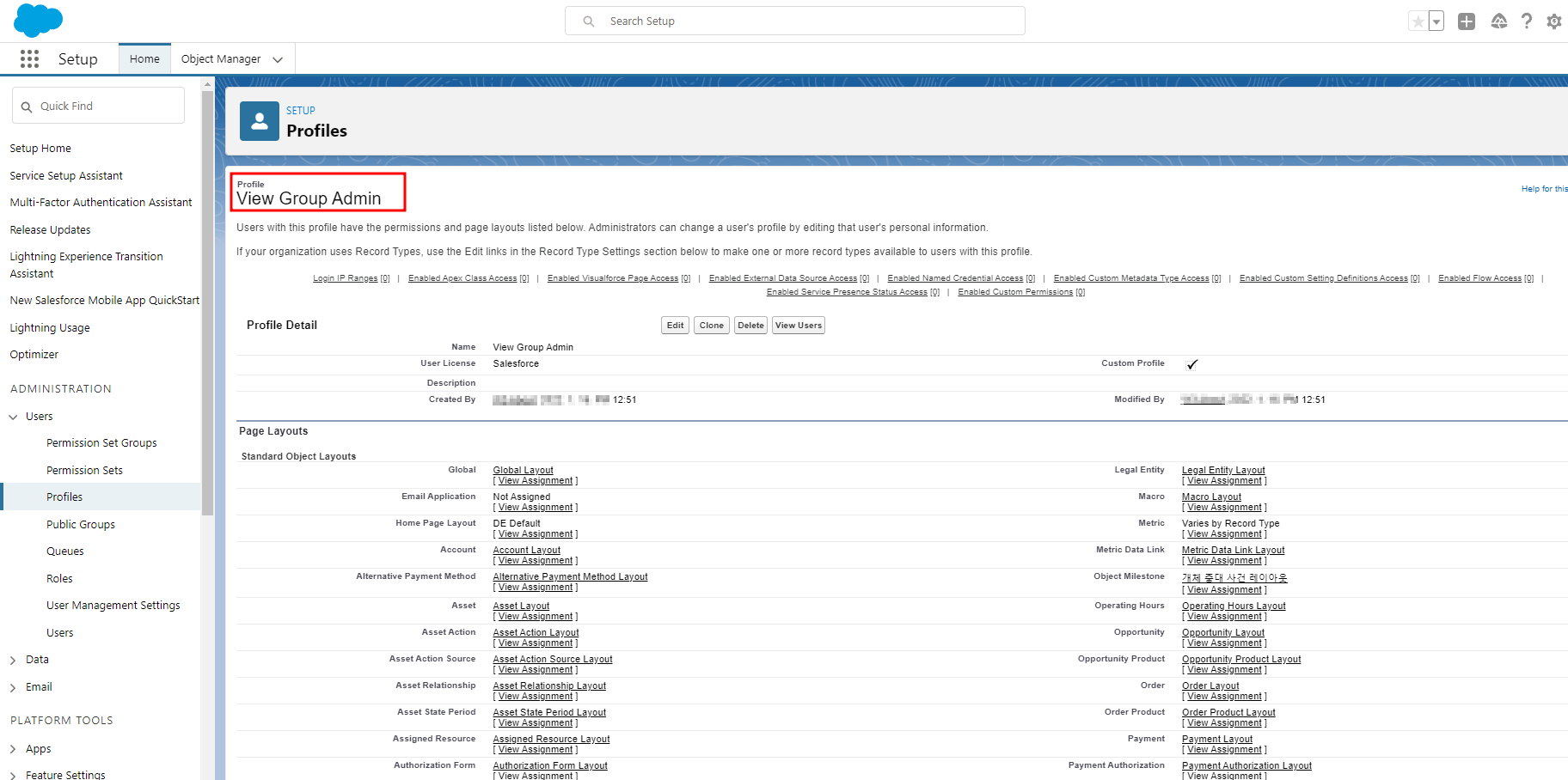 프로필도 객체와 같이 Standard와 Custom 프로필로 나누고 동일하게 Standard 프로필은 수정 할 수 없습니다.