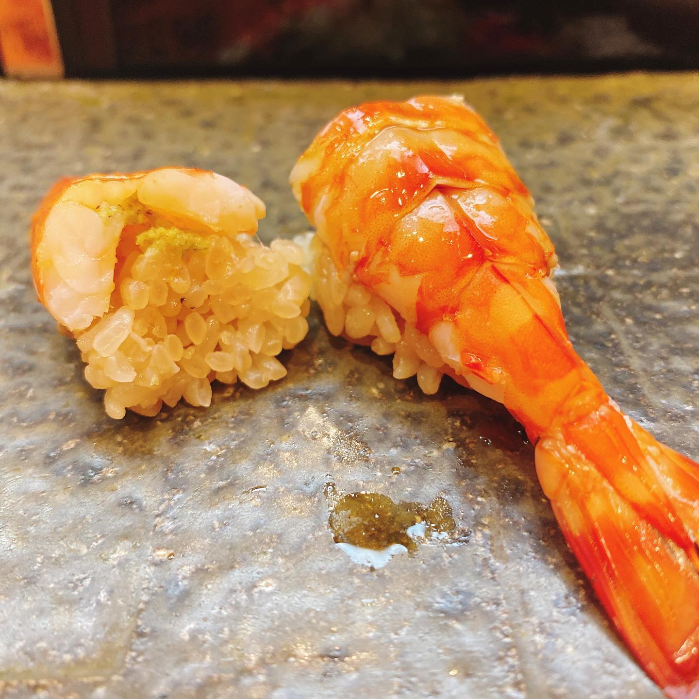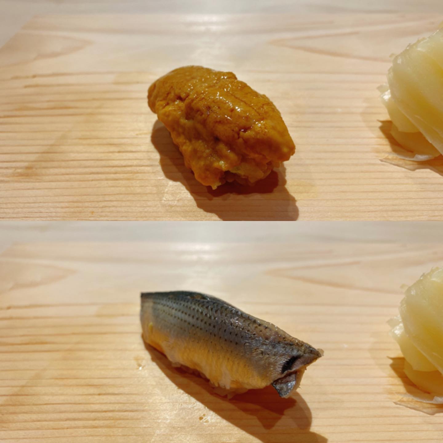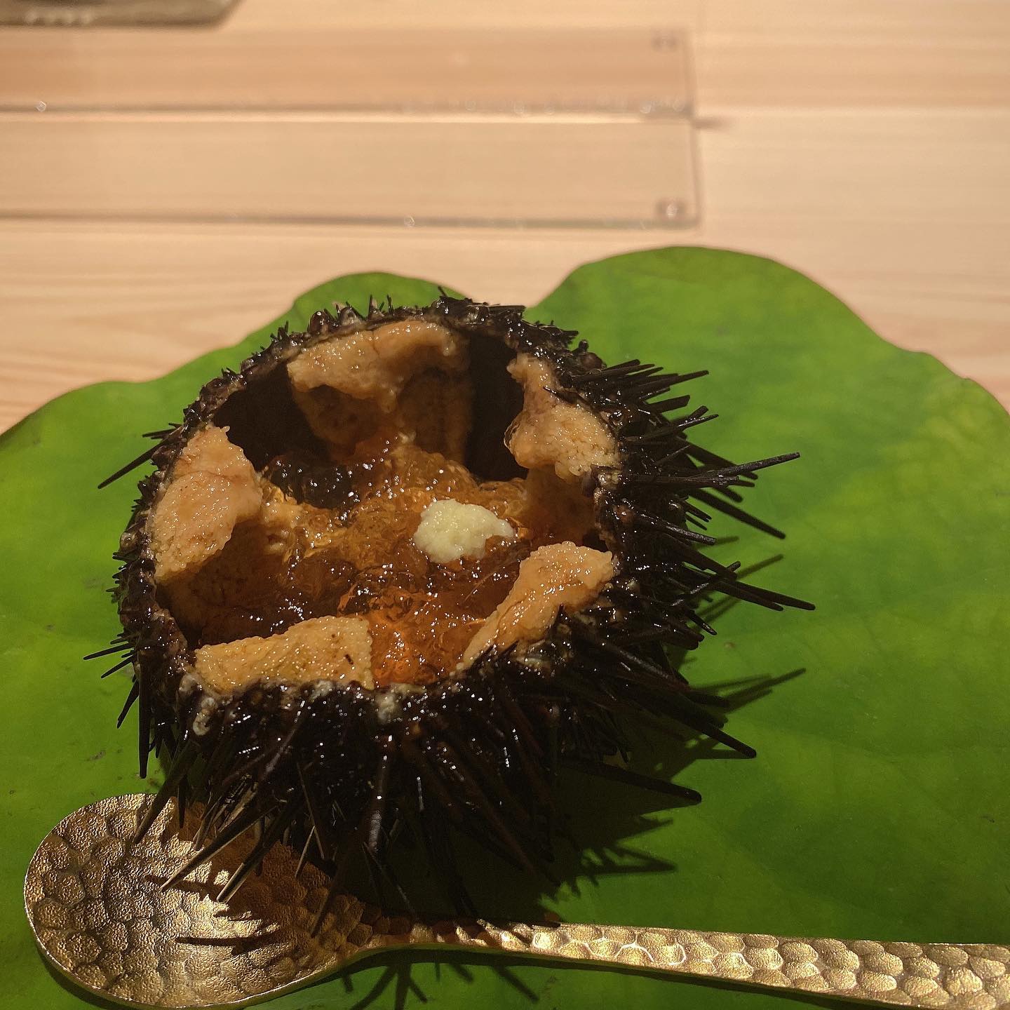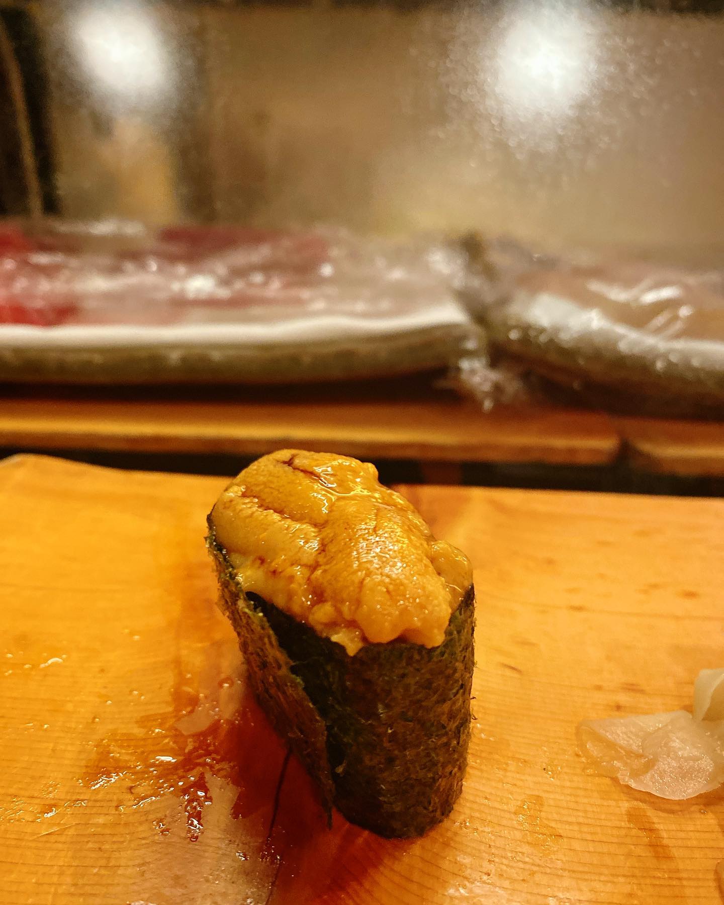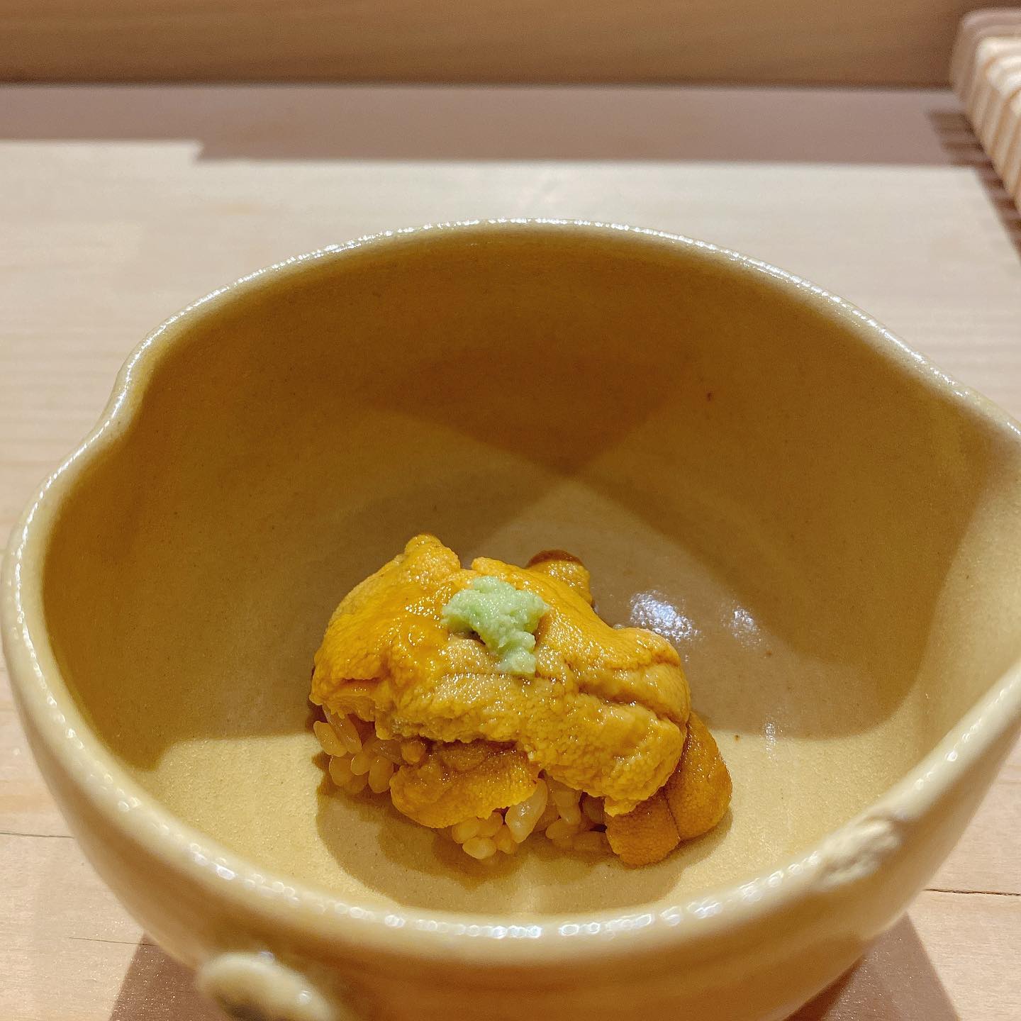 3장째의 성게~에 두근두근 거렸어~ 새우는 너무 맛있어서 디저트 후에, 리필했어🖐🏻초밥에 설렘이 멈추지 않아~~🧚♀️참을 수 없었어~~ #초밥 #초밥통