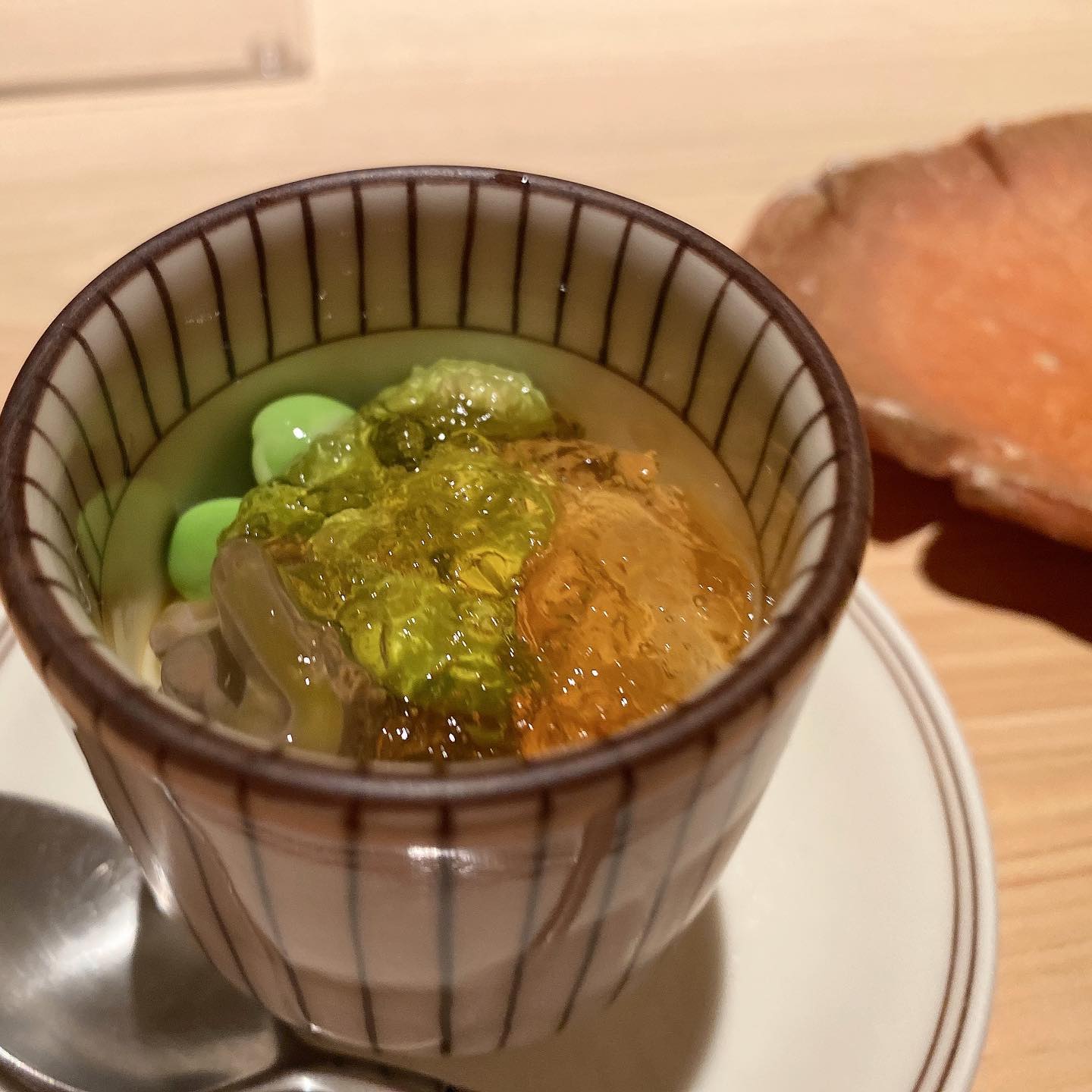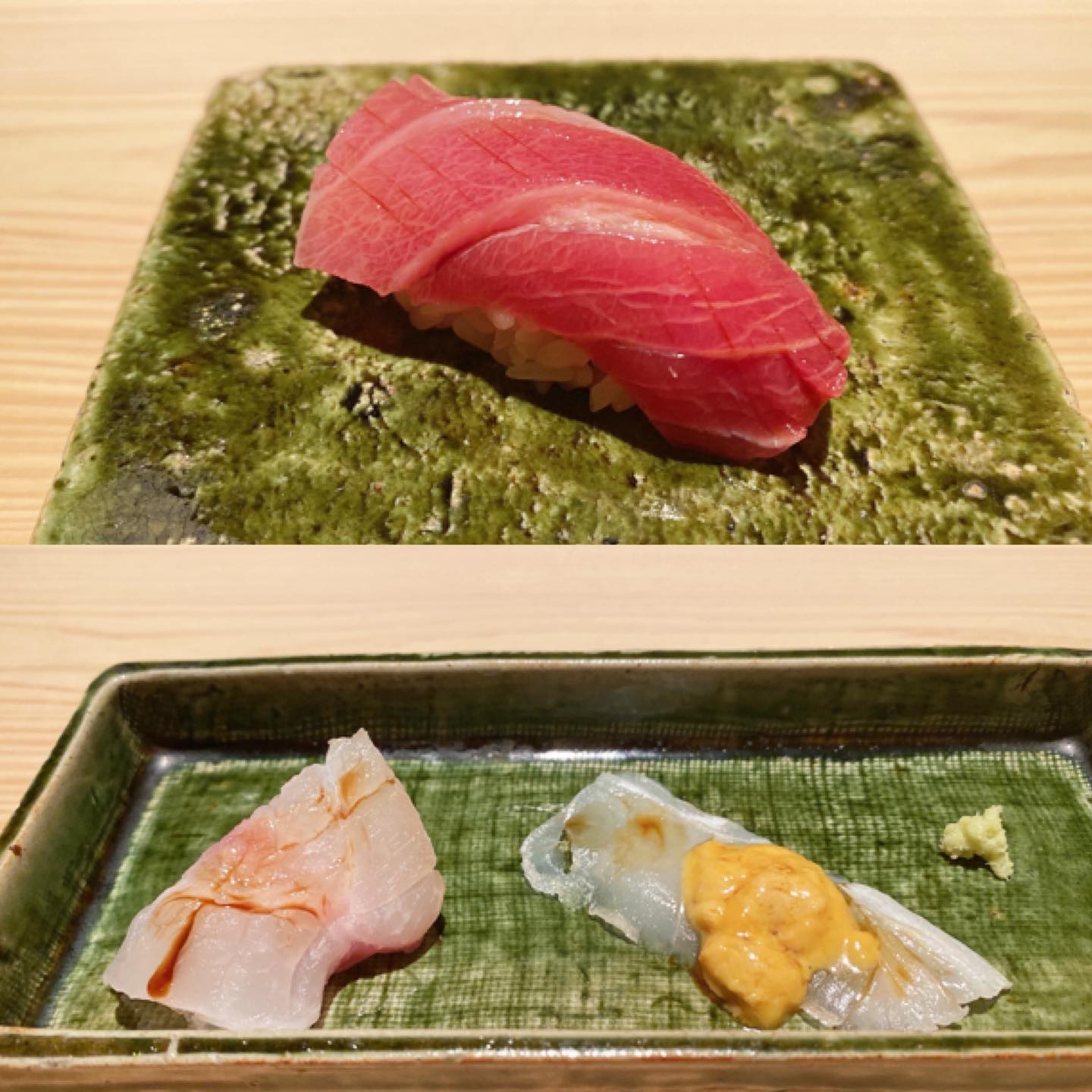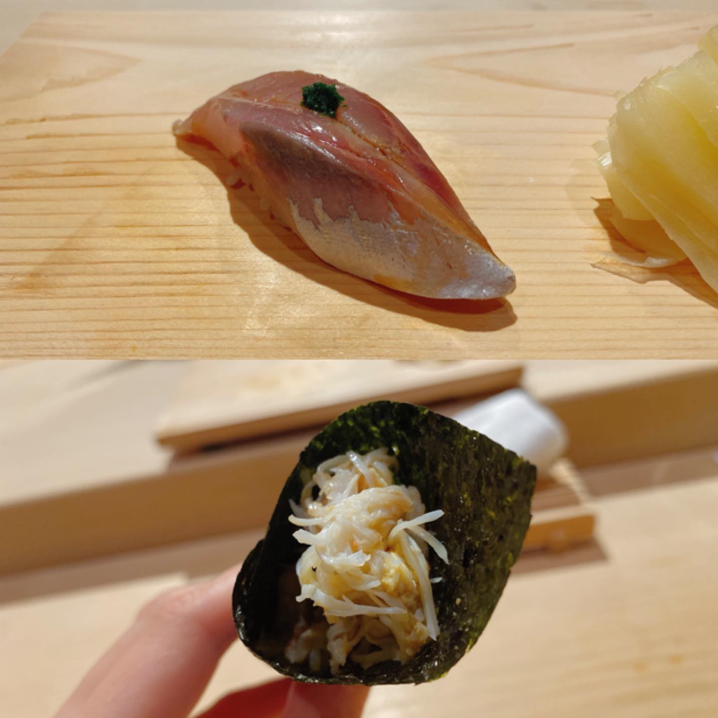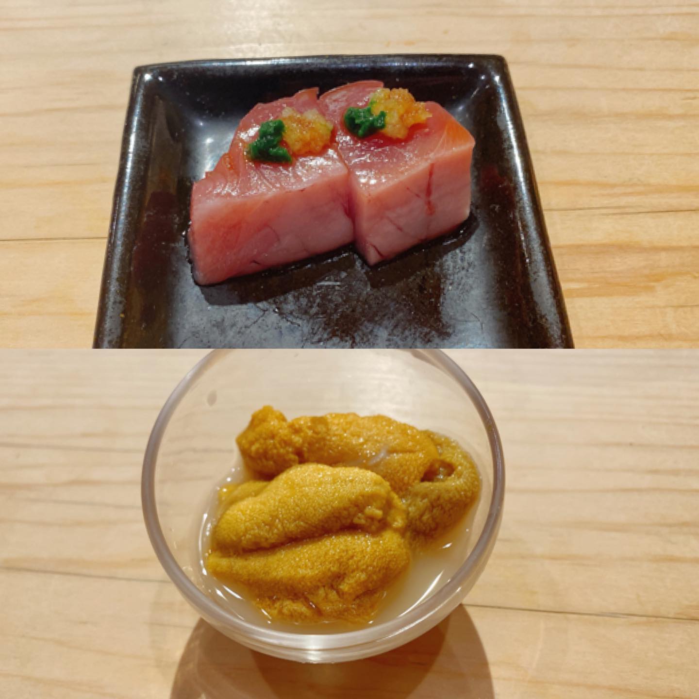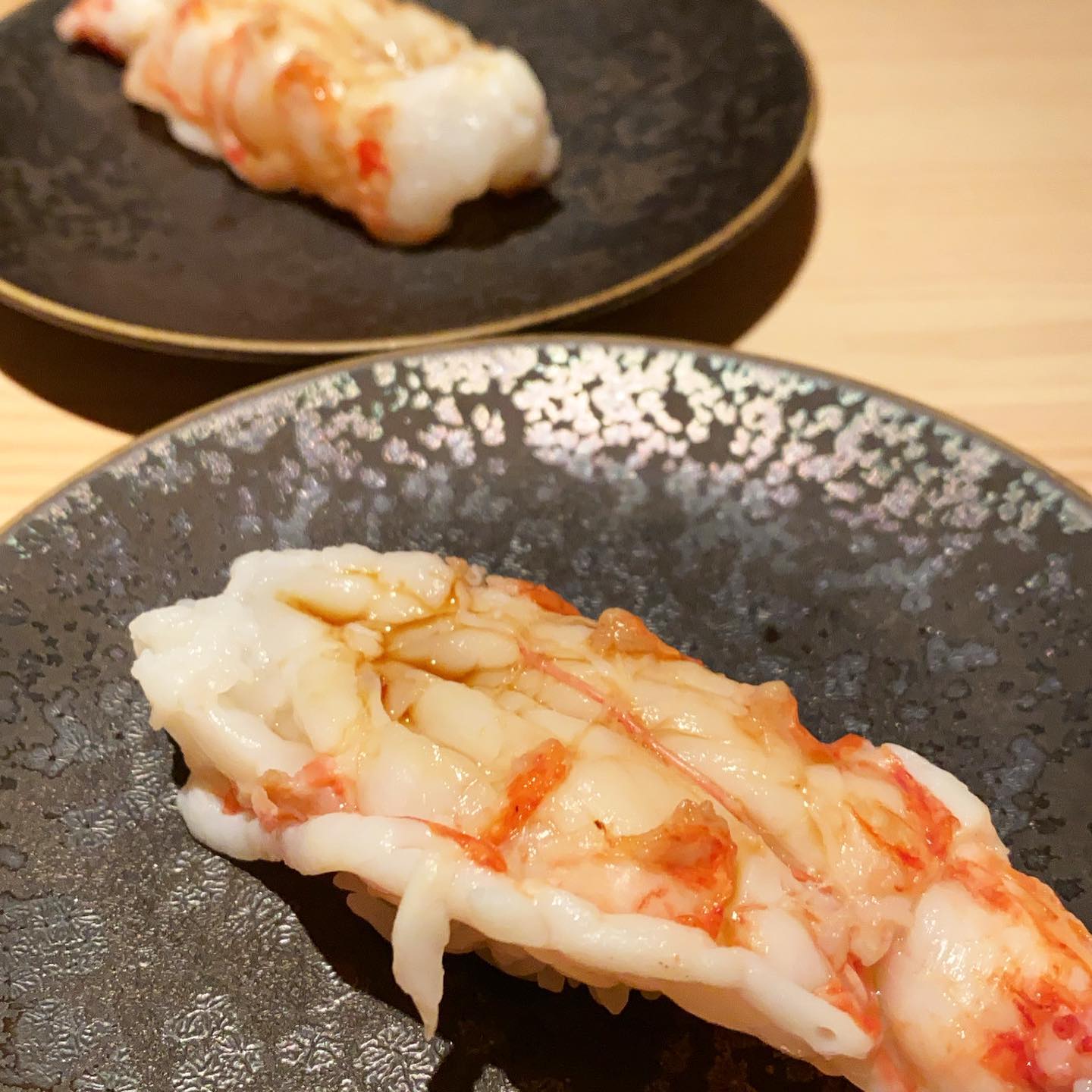 3장째의 성게~에 두근두근 거렸어~ 새우는 너무 맛있어서 디저트 후에, 리필했어🖐🏻초밥에 설렘이 멈추지 않아~~🧚♀️참을 수 없었어~~ #초밥 #초밥통
