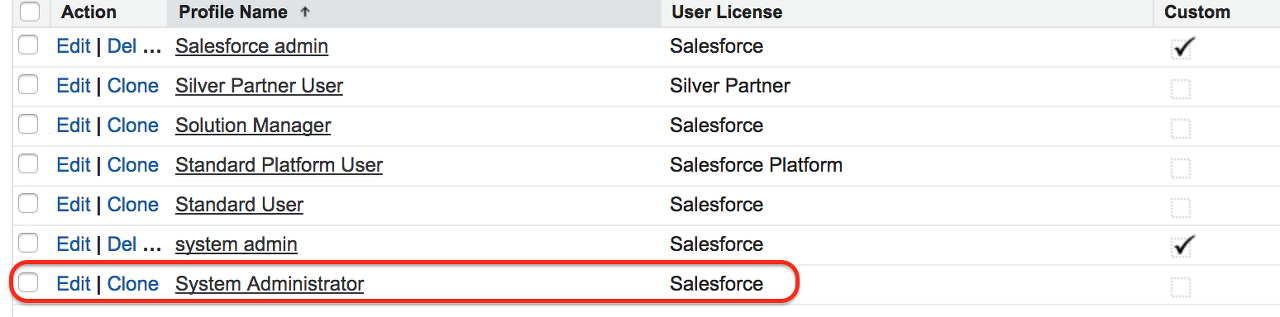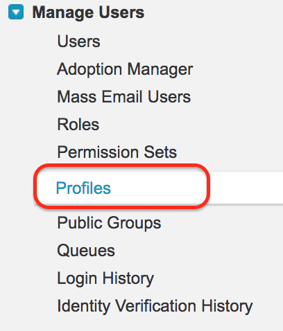 Salesforce에서 페이지 레이아웃 할당을 확인하려면 설정 | 관리 | 사용자 관리 | 프로필.