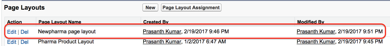 - Salesforce의 페이지 레이아웃은 기본적으로 개체 이름으로 생성됩니다.