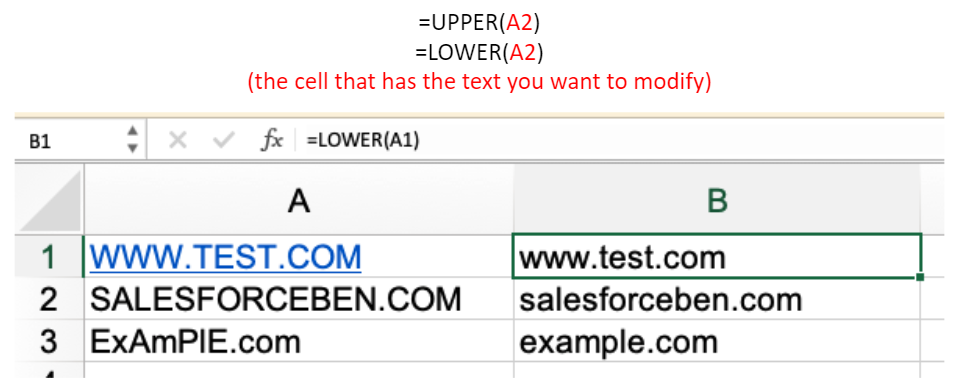 마찬가지로 전체 셀을 대문자 또는 소문자로 변환하는 기능을 공유합니다. 그것들은 똑같이 간단합니다.