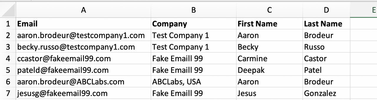 이름에 대한 참고 사항: 중복된 이름과 성을 찾을 수도 있습니다. 하지만 사람들이 이름과 성을 정확히 동일하게 사용하는 경우가 많습니다. 이 목록에는 Aaron Brodeur라는 두 사람이 있습니다. 그러나 그들은 고유한 이메일을 가지고 있고 다른 회사에서 일하기 때문에 동일인이 아니라는 것을 압니다.