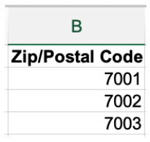 그러나 모든 장소에 정확히 이와 같은 우편 번호가 있는 것은 아닙니다. 미국의 일부 우편 번호는 0으로 시작합니다. 서식을 지정하지 않으면 Excel에서 문제가 됩니다. 뉴저지 우편 번호는 0으로 시작합니다. 서식을 지정하지 않고 Excel에 입력하면 다음과 같이 됩니다.
