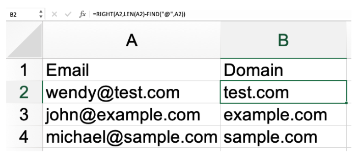 일부 Salesforce 사용자는 리드 또는 연락처의 이메일 도메인에 대해 많은 작업을 수행하며 이 데이터를 수식 필드가 아닌 텍스트로 원합니다. Excel을 사용하여 이메일 도메인을 쉽게 추출할 수도 있습니다.