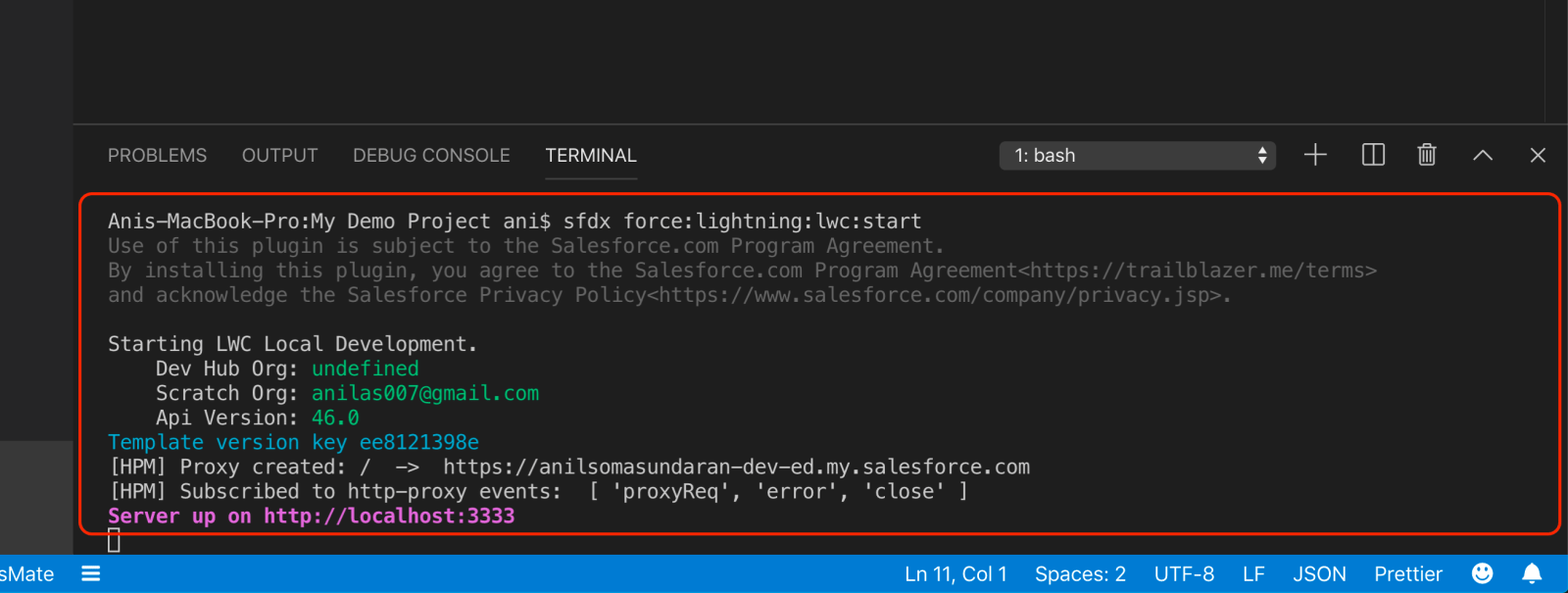 Next, Run LWC Start Command