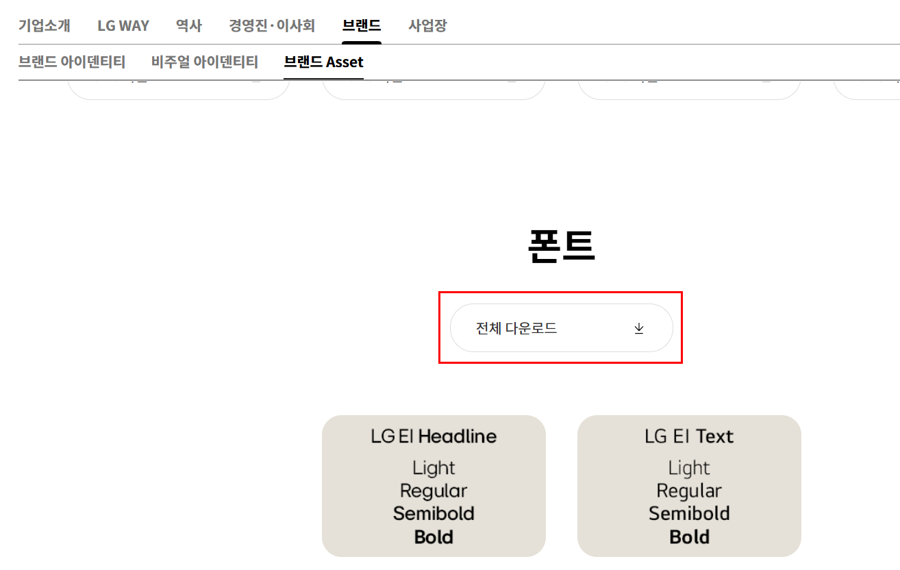 카테고리 없음 LG 폰트 다운로드 오아름 샘 2025. 5. 6. 08:14 반응형 https://www.lge.co.kr/company/info/brandAsset 브랜드 Asset | 브랜드 | 기업정보 | 회사소개 | LG전자 www.lge.co.kr 반응형 공유하기 게시글 관리 About W3