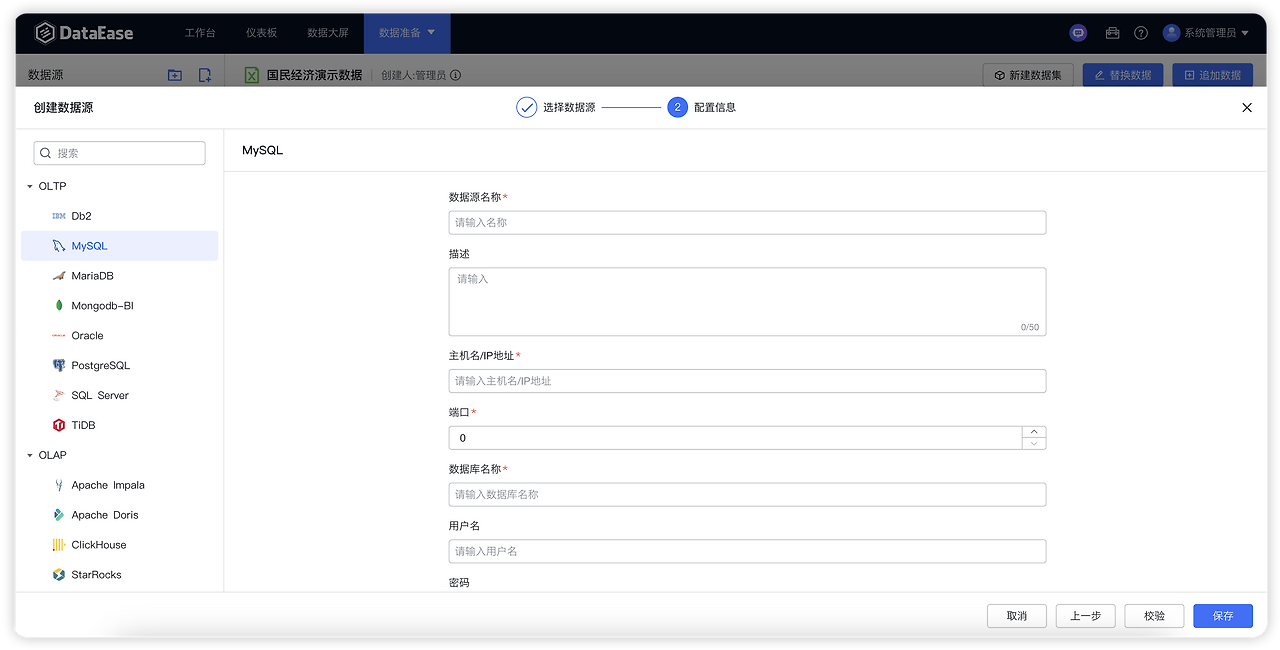 DataEase가 지원하는 데이터 소스:
